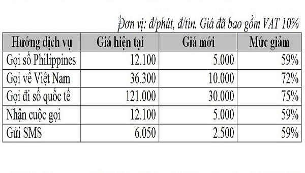 Chương trình giảm giá cước phí thoại và nhắn tin roaming áp dụng cho toàn bộ thuê bao Viettel chuyển vùng vào tất cả các mạng tại Philippines.