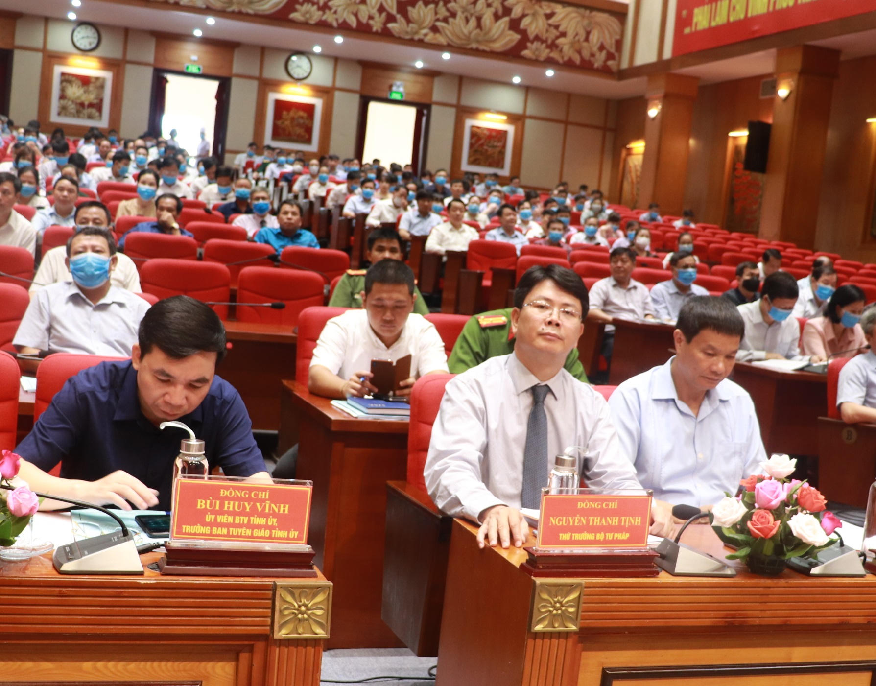 Tham dự Hội nghị có Thứ trưởng Bộ Tư pháp Nguyễn Thanh Tịnh; Vụ trưởng Vụ Phổ biến giáo dục pháp luật Lê Vệ Quốc, Vụ trưởng Vụ Thi đua Khen thưởng Nguyễn Thị Tố Nga. Về phía tỉnh Vĩnh Phúc, có Phó Bí thư thường trực Tỉnh ủy, Chủ tịch HĐND tỉnh Trần Văn Vinh, Phó Bí thư Tỉnh ủy, Chủ tịch UBND tỉnh Nguyễn Văn Trì, Tỉnh ủy viên, Giám đốc Sở Tư pháp Nguyễn Văn Bắc cùng đại diện lãnh đạo các Sở ban, ngành trong tỉnh.