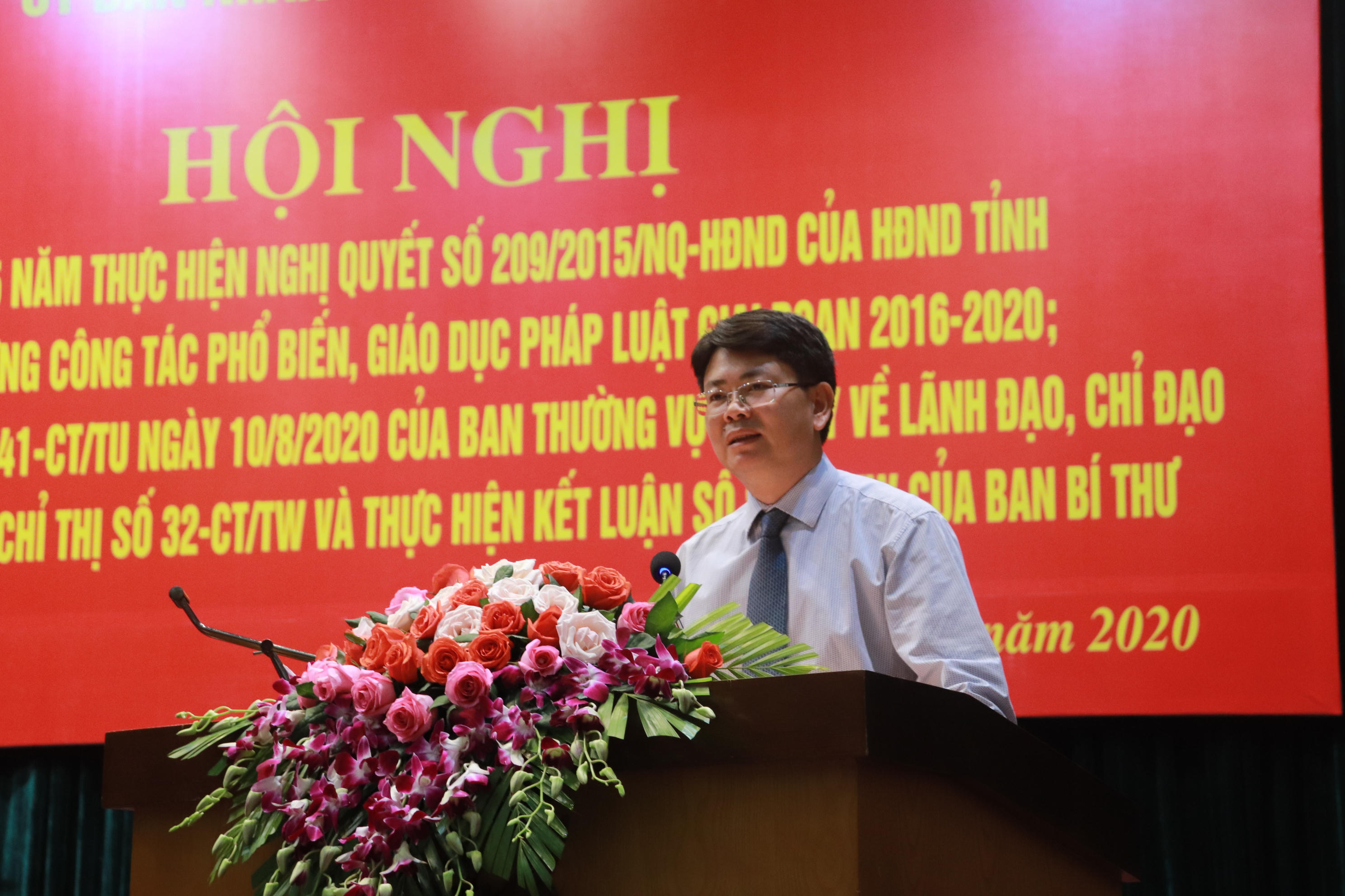 Phát biểu đáp từ, Tỉnh ủy viên, Giám đốc Sở tư pháp Nguyễn Văn Bắc cho biết ngay sau Hội nghị này, Sở tư pháp, Hội đồng PBGDPL tiếp tục tham mưu UBND tỉnh chỉ đạo triển khai có hiệu quả các nhiệm vụ hoàn thiện thể chế, cơ chế chính sách liên quan tới công tác PBGDPL, triển khai kết hợp chặt chẽ công tác này nhằm nâng cao ý thức chấp hành pháp luật, bảo đảm tính đồng bộ, xuyên suốt, hiệu quả giữa PBGDPL với tổ chức thi hành pháp luật. Công tác PBGDPL trở thành cầu nối vững chắc kịp thời đưa chủ trương, đường lối của Đảng chính sách pháp luật của nhà nước vào cuộc sống.
