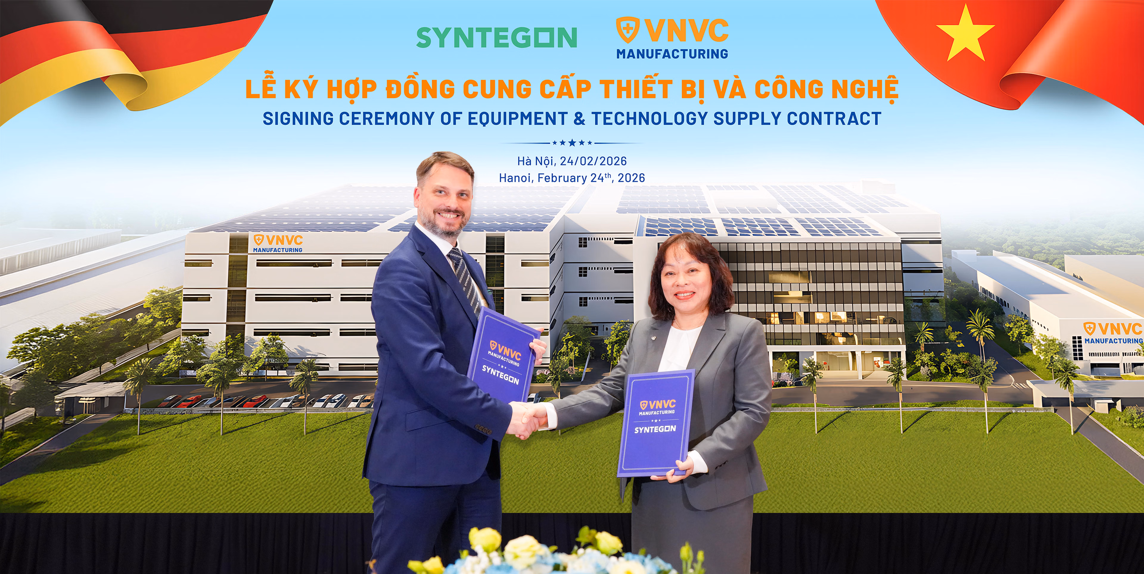 Ngày 24/2, Công ty Vắc xin Việt Nam (VNVC) ký hợp đồng với Tập đoàn Syntegon (Đức) đầu tư dây chuyền sản xuất vắc xin công suất lớn, công nghệ cao cho Nhà máy Vắc xin và Sinh phẩm VNVC, đưa nhà máy vào nhóm 20 trung tâm sản xuất vắc xin trên thế giới có công nghệ hiện đại hàng đầu của Syntegon.