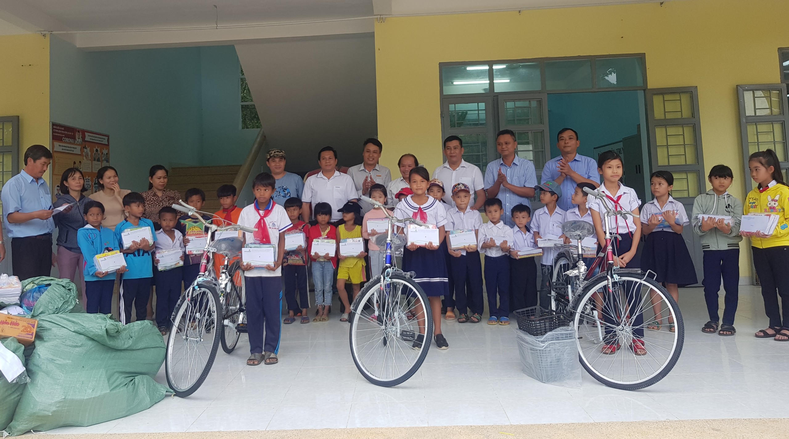 Cụ thể, đoàn đã tặng 23 xuất quà, mỗi xuất trị giá 1 triệu đồng, 3 chiếc xe đạp cho học sinh, sách vở, quần áo, nhu yếu phẩm. Công ty T&T Connection hỗ trợ mở sổ tiết kiệm cho 3 em học sinh có hoàn cảnh mỗi xuất trị giá 30 triệu đồng.