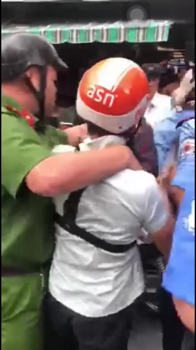 Thiếu úy Nhân bị cho là còn ôm, kẹp cổ ông Trường rồi dùng tay bấm chốt đai bảo vệ camera (do ông Trường đeo trước ngực để ghi cảnh tại hiện trường). Sau nhiều lần giằng co thì Thiếu úy Nhân đã giật được camera của ông Trường. Ngay sau đó, dù có mặt nhiều công an và dân phòng nhưng một số người vẫn lao vào đánh, dùng mũ bảo hiểm đập vào đầu ông Trường.