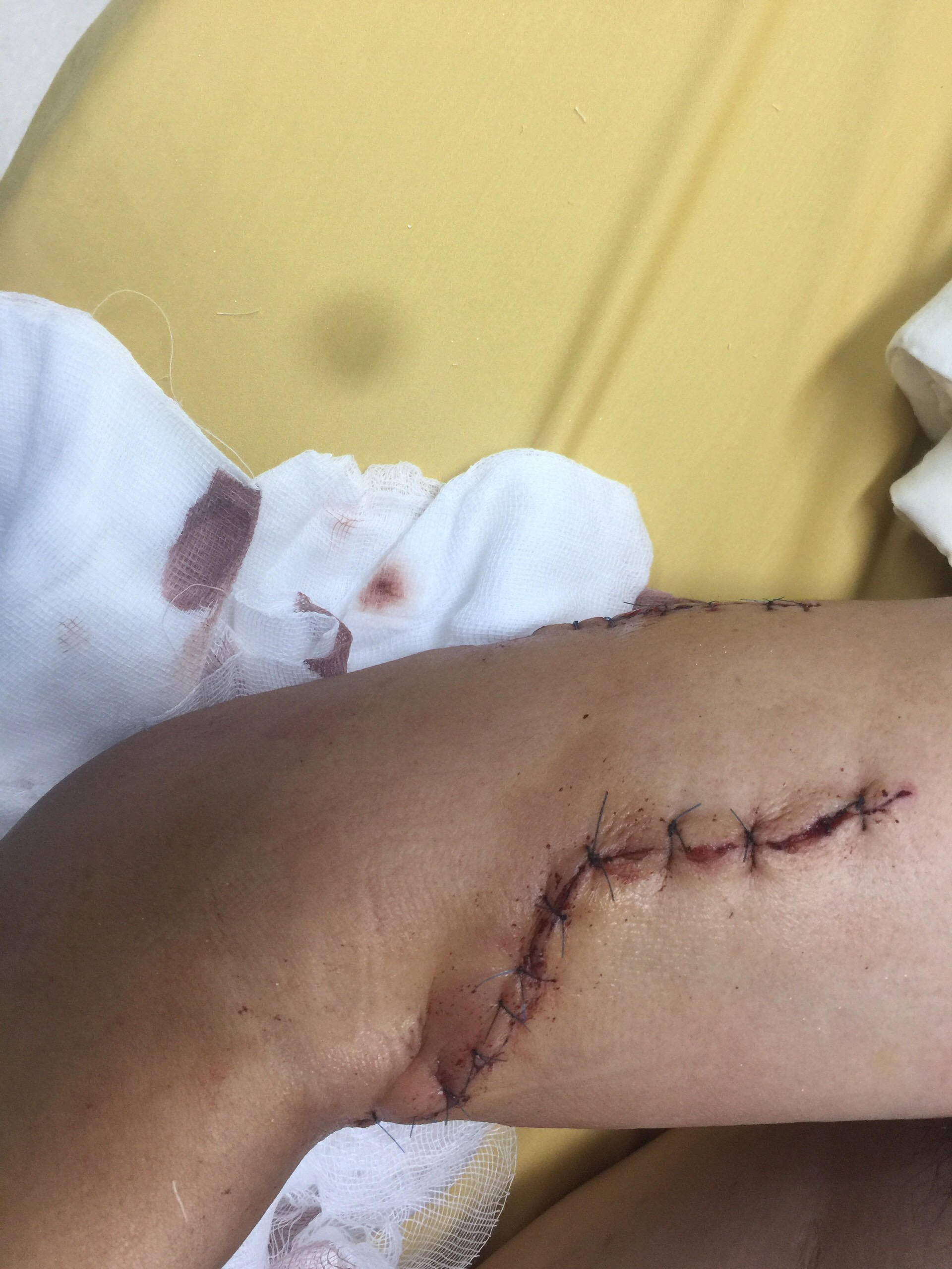 Sau khi vào viện nạn nhân được kiểm tra và được các bác sĩ chẩn đoán: vết thương xuyên thấu 1/3 dưới cánh tay phải, đứt cơ tam đầu , nhị đầu, thần kinh quay; gãy đốt 1 và đứt gân duỗi ngón III. Sau khi chẩn đoán các bác sĩ đã tiến hành phẫu thuật: nối gân, cơ đứt, kết xương gãy, nối dây thần kinh đứt bằng kĩ thuật vi phẫu. Sau 10 ngày nằm viện, nạn nhân đã được ra viện về nhà và đang chờ kết quả giám định tỷ lệ tổn thương cơ thể.