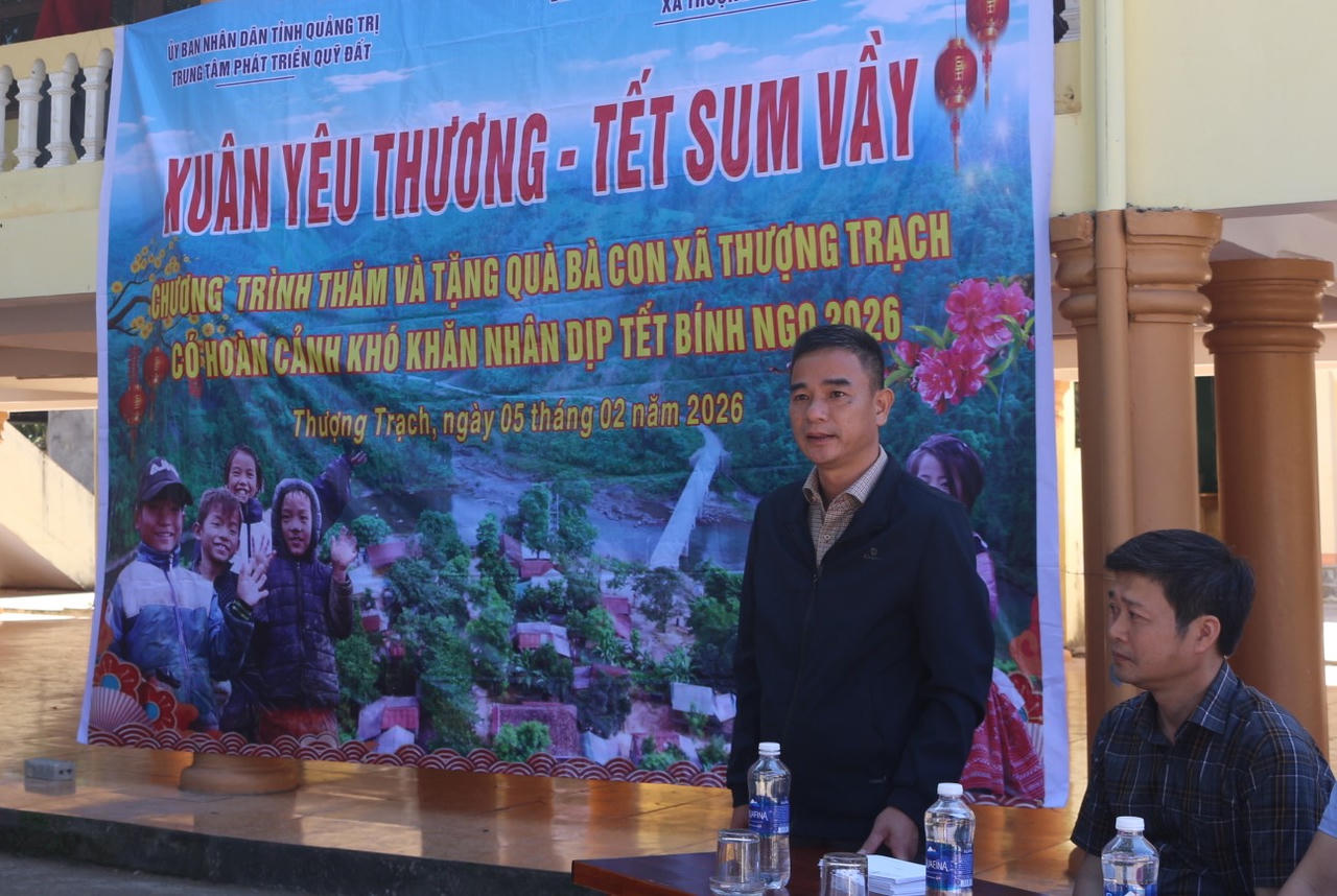 Ông Lê Anh Đức, Giám đốc Trung tâm Phát triển Quỹ đất tỉnh Quảng Trị chia sẻ thêm, việc tham gia chương trình trao quà tại xã biên giới Thượng Trạch là hoạt động thiết thực, thể hiện tinh thần trách nhiệm xã hội và sự sẻ chia của đơn vị đối với đồng bào vùng sâu, vùng xa còn nhiều khó khăn, nhân dịp Tết đến, Xuân về.
