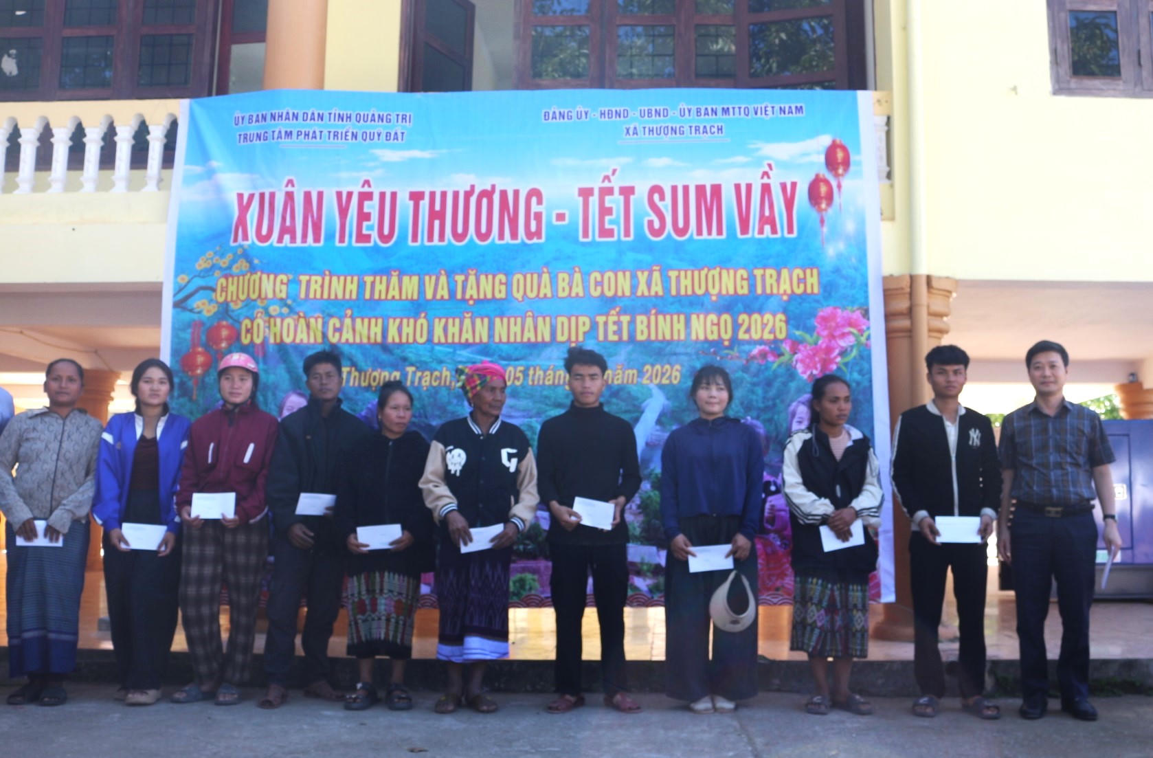 Thấu hiểu những khó khăn đó, tập thể cán bộ, công chức Toà án nhân dân Khu vực 1, tỉnh Quảng Trị, Ngân hàng Nông nghiệp và Phát triển Nông thôn Việt Nam - Chi nhánh Bắc Quảng Bình, Trung tâm Phát triển Quỹ đất tỉnh Quảng Trị, Ngân hàng Vietinbank Quảng Bình cùng nhau chung tay, tự nguyện đóng góp, trích kinh phí để trao tặng 150 phần quà cho bà con đồng bào dân tộc tại xã Thượng Trạch. Mỗi suất quà trị giá 500.000 đồng, được trao trực tiếp bằng tiền mặt cho các hộ dân ở Bản Troi, Bản Noồng Cũ, AKI, 51 và bản Noồng Mới, góp phần giúp bà con trang trải sinh hoạt trước mắt.