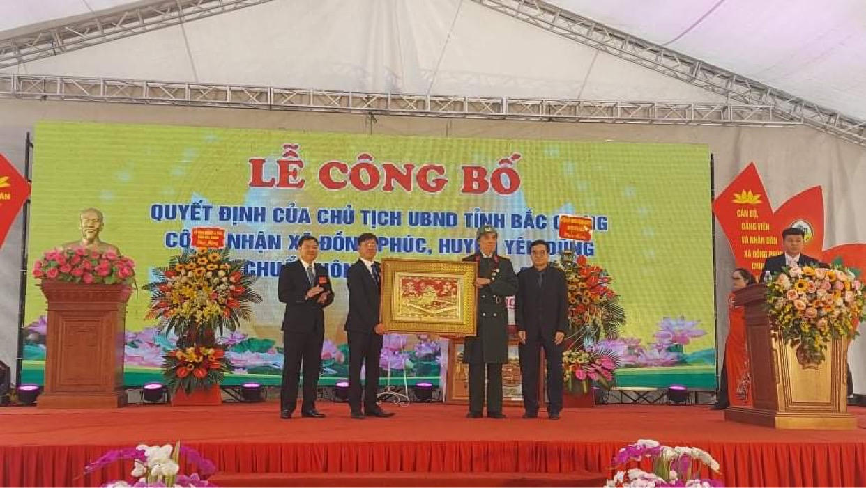 Thừa ủy quyền của Chủ tịch UBND tỉnh, đồng chí Nguyễn Văn Minh, Phó Chánh Văn phòng tỉnh Bắc Giang trao Bằng công nhận, tặng hoa chúc mừng cán bộ, đảng viên và nhân dân xã Đồng Phúc; Nhân dịp này, xã Đồng Phúc được UBND huyện Yên Dũng tặng món quà trị giá 250 triệu đồng.