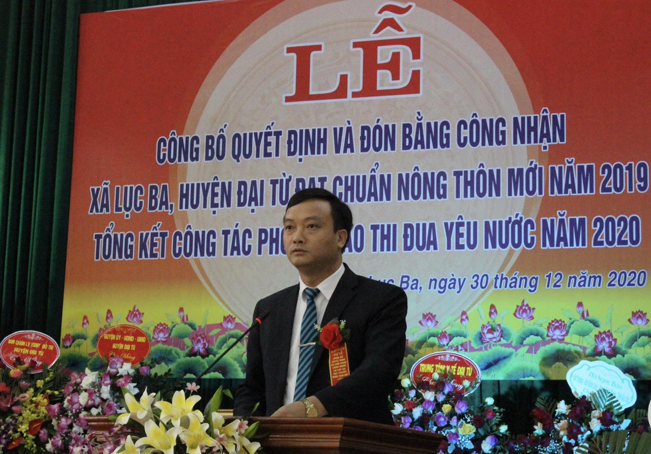 Phát biểu tại buổi lễ, Phó Chủ tịch huyện Đại Từ, Nguyễn Nam Tiến biểu dương và ghi nhận những thành tích của Đảng bộ và nhân dân các dân tộc xã Lục Ba đã đạt được, trong quá trình xây dựng NTM, xã Lục Ba đã huy động được sức mạnh tổng hợp từ mọi nguồn lực của địa phương, người dân Lục Ba từ những người còn ở quê đến những người công tác ở mọi miền đất nước đều chung tay góp sức xây dựng quê hương.