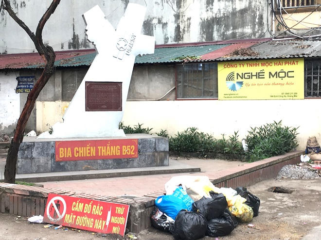 Biểu tượng chiến thắng B52 trên đường Định Công, Hà Nội biến thành nơi đổ rác.