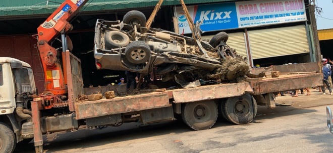 Tại hiện trường, xe hổ vồ hư hỏng phần đầu, đè lên xe bán tải. Còn chiếc xe bán tải bị bẹp dúm. Thời điểm xảy ra tai nạn trong xe bán tải có 3 người, đều thoát chết một cách kỳ diệu.