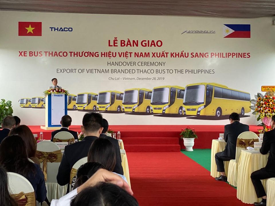 Trên cơ sở đó, ngày 28/12, Thaco đã chính thức xuất khẩu 15 xe bus thương hiệu Thaco cho đối tác Autodelta để phục vụ thị trường Philippines và ký kết kế hoạch xuất khẩu sang Philippines trong năm 2020 là 200 xe bus.
