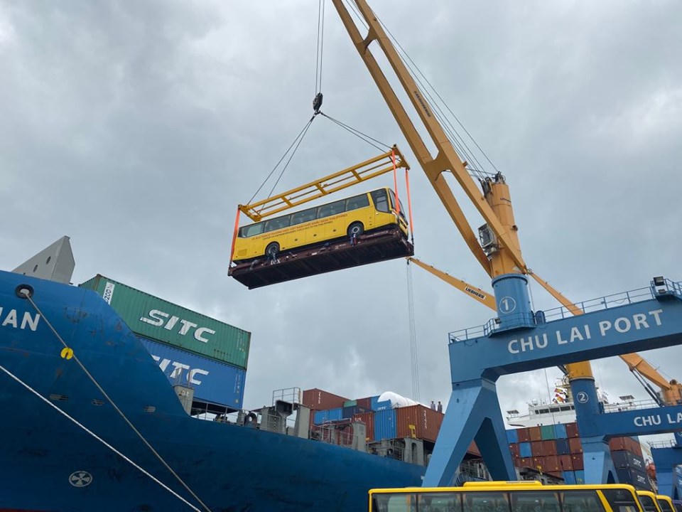 Lô xe Bus Thaco được xuất khẩu từ Cảng Chu Lai