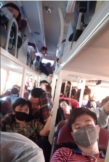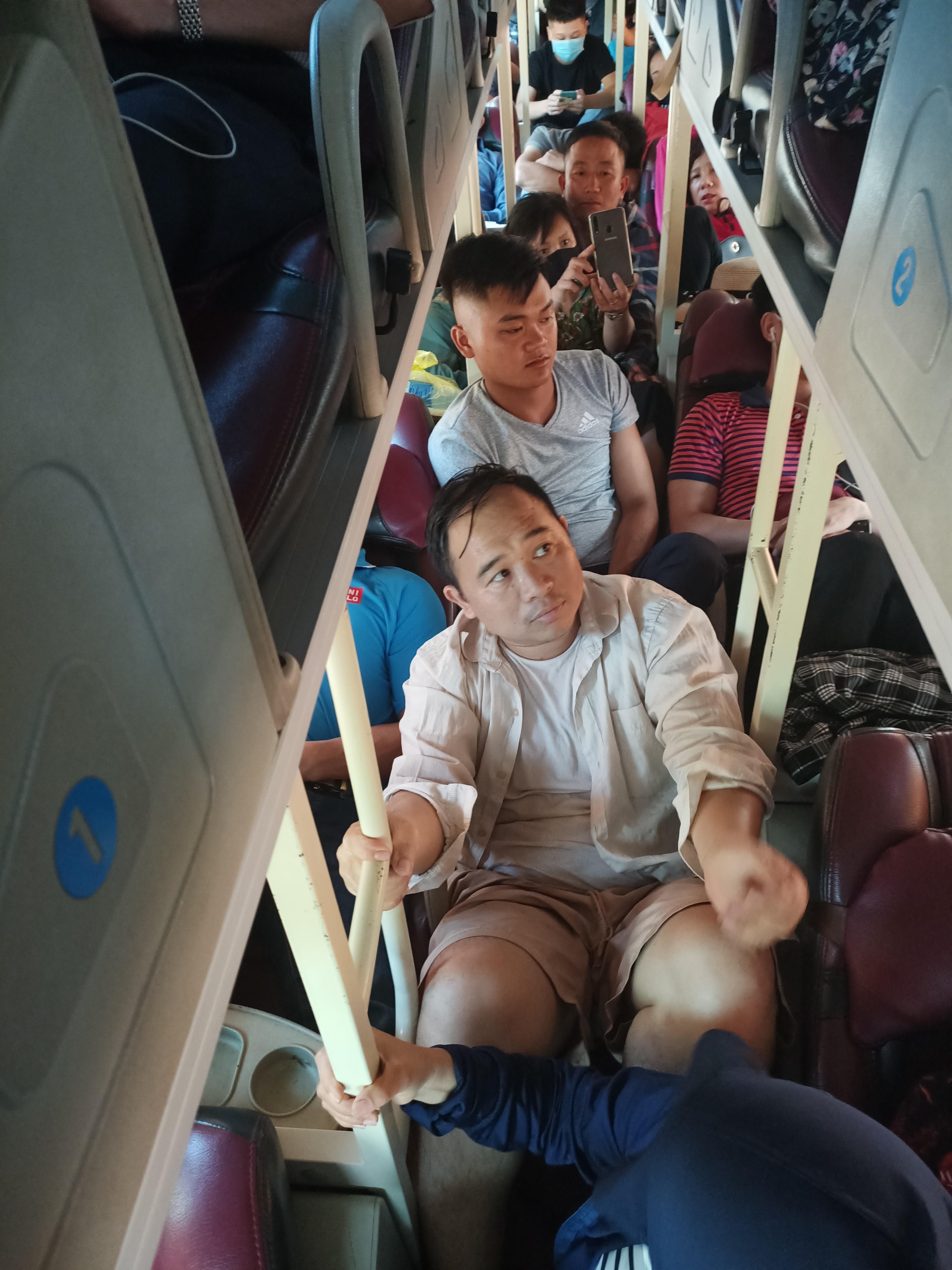 Trên xe đã hết chỗ nên hành khách bị nhà xe xếp ngồi vào hai lối đi giữa những hàng ghế nằm suốt từ cuối cho tới tận trên đầu xe. Suốt hành trình hàng trăm cây số, hành khách phải chịu đựng sự chật chội, ngột ngạt, khó thở.