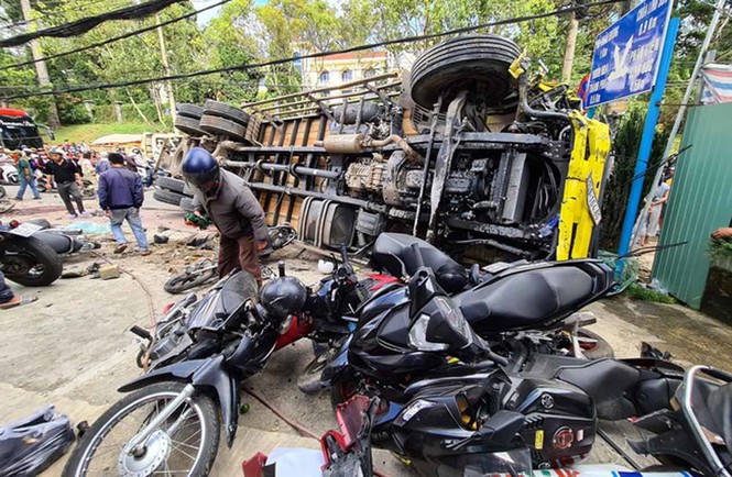 Xe tải chở bia gây tai nạn hất tung 17 chiếc xe máy trên phố Đà Lạt