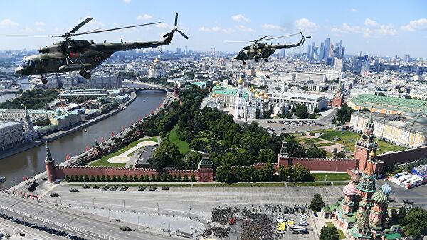 Tham gia lễ duyệt binh còn có 16 nhóm bay với tổng số 75 máy bay. Mở màn là các máy bay Mi-26, Mi-8, lần lượt sau đó là nhóm Mi-35, Ka-52, trực thăng hoả lực Mi-28.