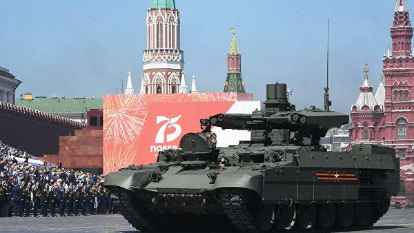 Diễu hành của xe tăng, xe bọc thép và các vũ khí, khí tài: Xe tăng T-34-85, xe tăng T-34 huyền thoại, pháo tự hành SU-100; xe ô tô bọc thép Tigr; xe tăng Armata-T15; xe bọc thép BMP-2; tổ hợp tên lửa chống tăng Kornet; xe tăng T-90M Prorưv; xe tăng T-80BVM; pháo tự hành Koalisia-SV; tên lửa chiến dịch - chiến thuật Iskander-M; hệ thống tên lửa phòng không S-350 Vityaz và S-300V4; hệ thống phóng loạt tên lửa phản lực Tornado-S; tên lửa đạn đạo liên lục địa (ICBM) RS-24 Yars...