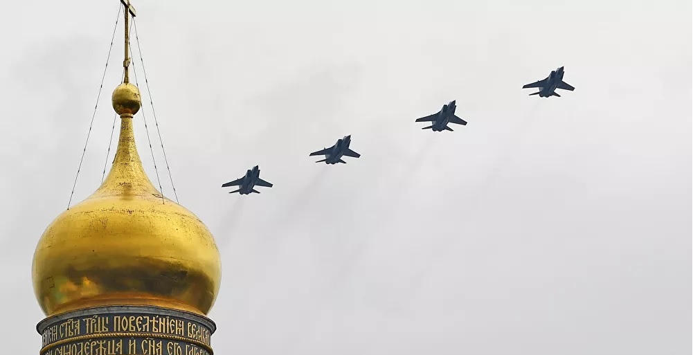 Cuộc diễu hành trên không Ngày Chiến thắng tiếp tục với 5 máy bay chiến đấu thế hệ thứ tư MiG-29SMT, tiếp theo là máy bay ném bom tiền tuyến Su-24M và bốn máy bay tiêm kích đánh chặn MiG-31K được trang bị hệ thống tên lửa siêu thanh Dagger.