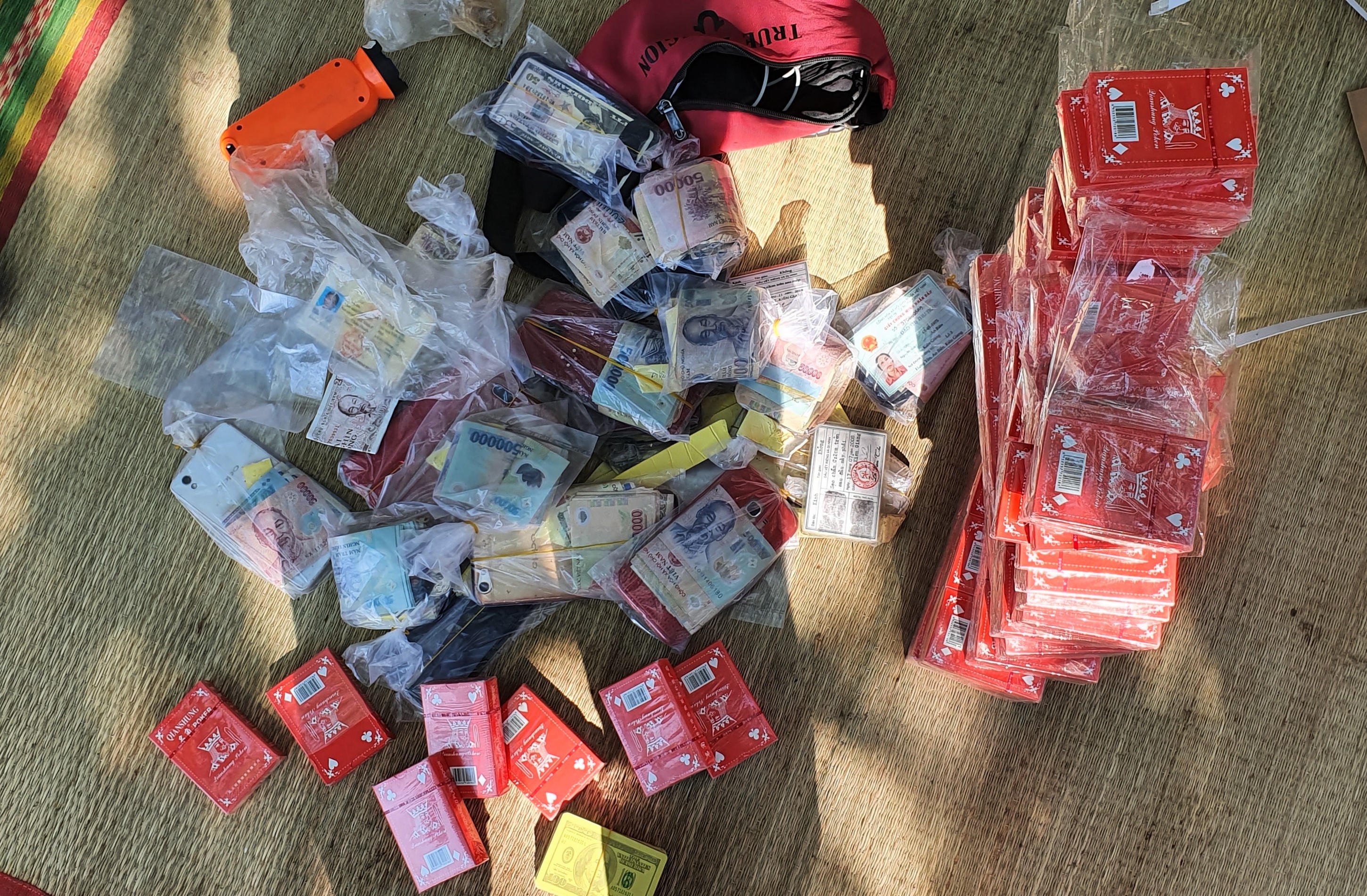 Tại hiện trường, Công an thu giữ 98 bộ bài tây, 10 xe máy, 12 điện thoại di động và số tiền trên 100 triệu đồng. Tất cả các con bạc là có hộ khẩu thường trú tại địa phương và ngoài huyện Châu Thành (Kiên Giang). Các con bạc khai nhận mỗi ván ăn, thua từ 50.000 - 100.000 đồng để kiếm tiền sài Tết.