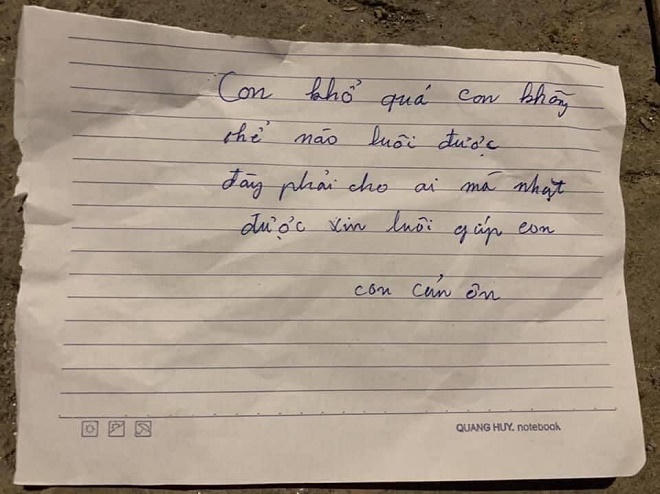 Theo Trung tá Nguyễn Văn Tiến - Trưởng Công an thị trấn Quang Minh, bé gái rất xinh xắn, nặng 3kg, được mặc quần áo để trong chiếc giỏ nhựa. Thời điểm phát hiện cháu bé không khóc. Cháu bé bị bỏ rơi kèm lời nhắn việc người mẹ khó khăn, nhờ mọi người nuôi hộ.