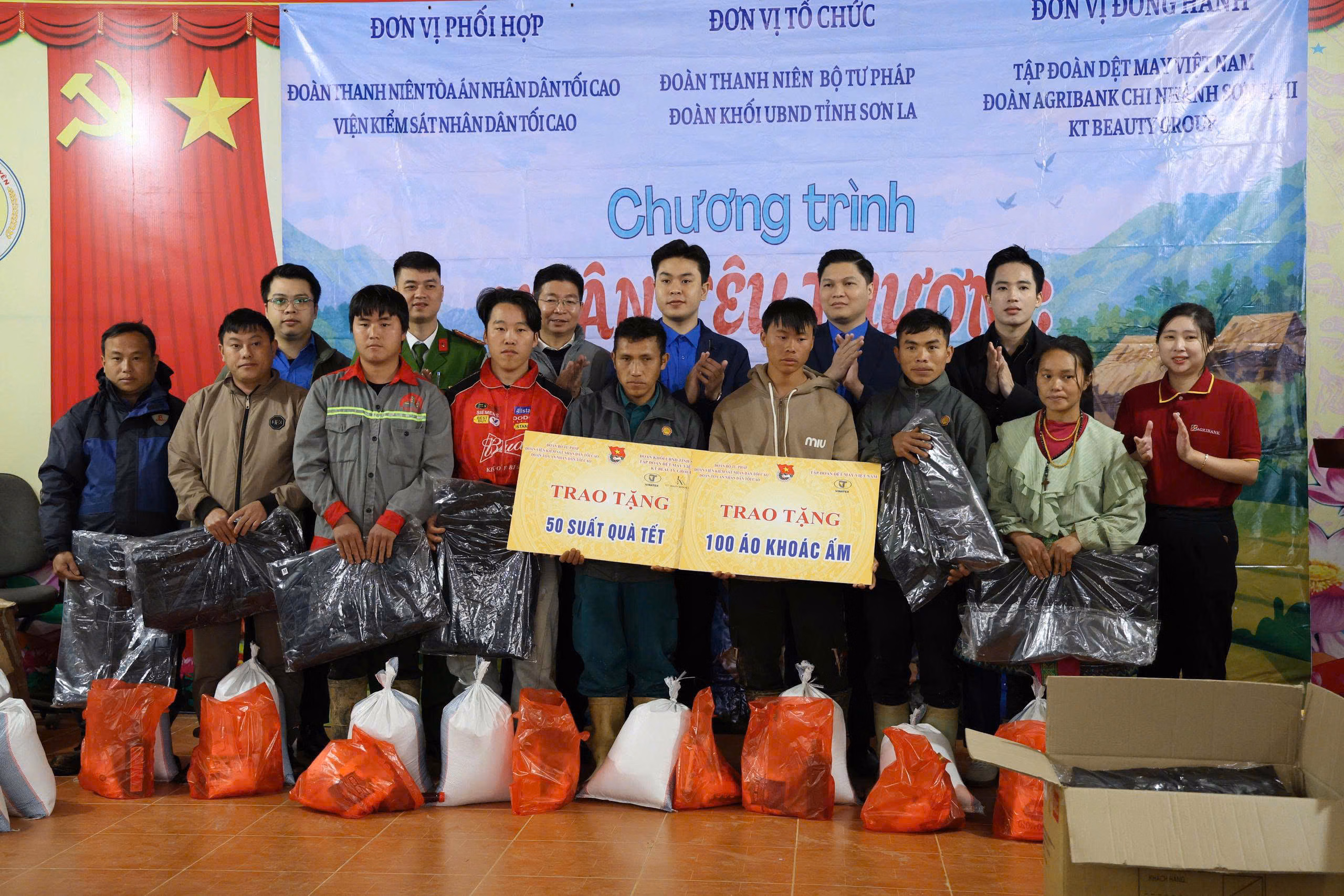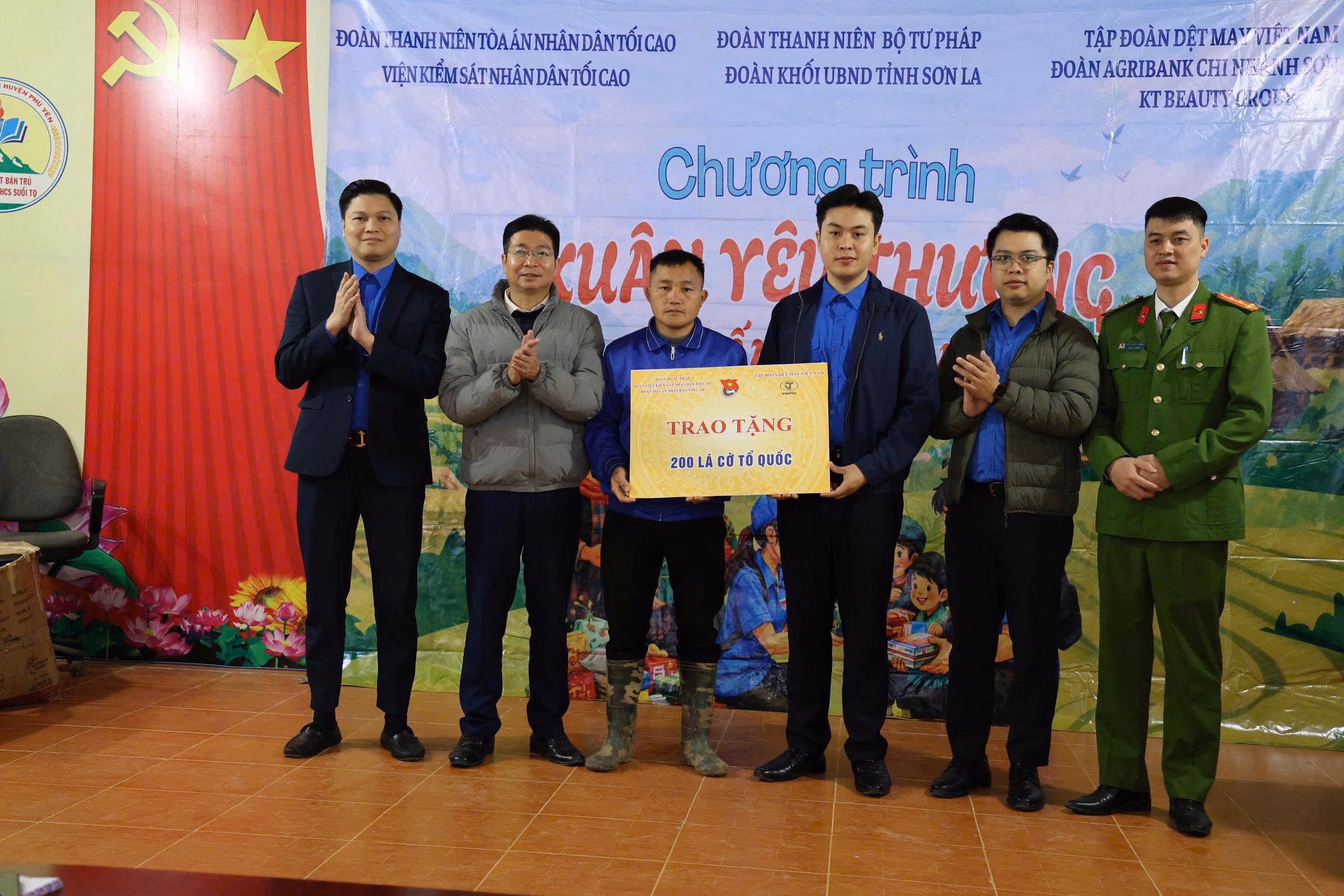 Với chủ đề “Xuân yêu thương - Tết ấm vùng cao”, ngày 09/02/2026, Đoàn Thanh niên Bộ Tư pháp, Đoàn khối UBND tỉnh Sơn La phối hợp với Đoàn Thanh niên các cơ quan: Tòa án nhân dân tối cao, Viện Kiểm sát nhân dân tối cao, Trại giam Yên Hạ; Tập đoàn Dệt may Việt Nam và KT Beauty Medical Centre tổ chức Chương trình thăm hỏi, trao tặng quà, xóa nhà tạm cho đồng bào và trao học bổng cho học sinh có hoàn cảnh khó khăn tại xã Suối Tọ, tỉnh Sơn La.