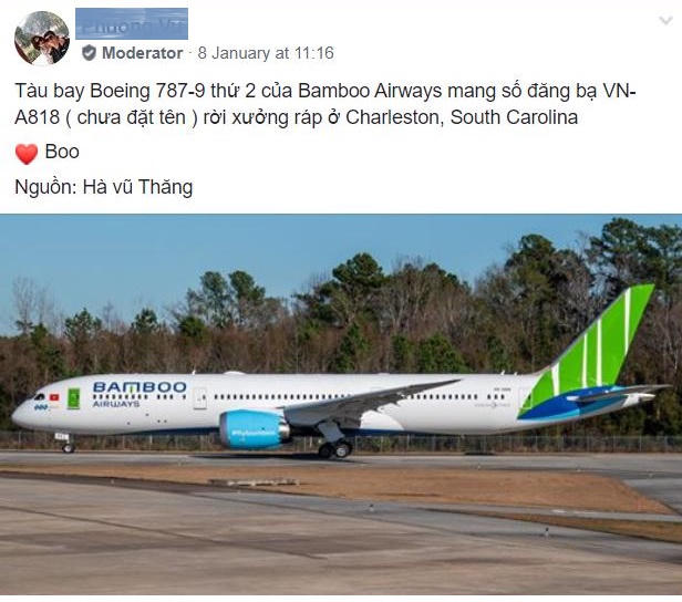 Trả lời câu hỏi về vấn đề này, ông Đặng Tất Thắng, Phó Chủ tịch kiêm CEO Bamboo Airways xác nhận, đây đúng là hình ảnh của máy bay thân rộng Boeing 787-9 Dreamliner thứ 2 trong đội bay Bamboo Airways, dự kiến sẽ về Việt Nam gia nhập vào ngày 18/1.