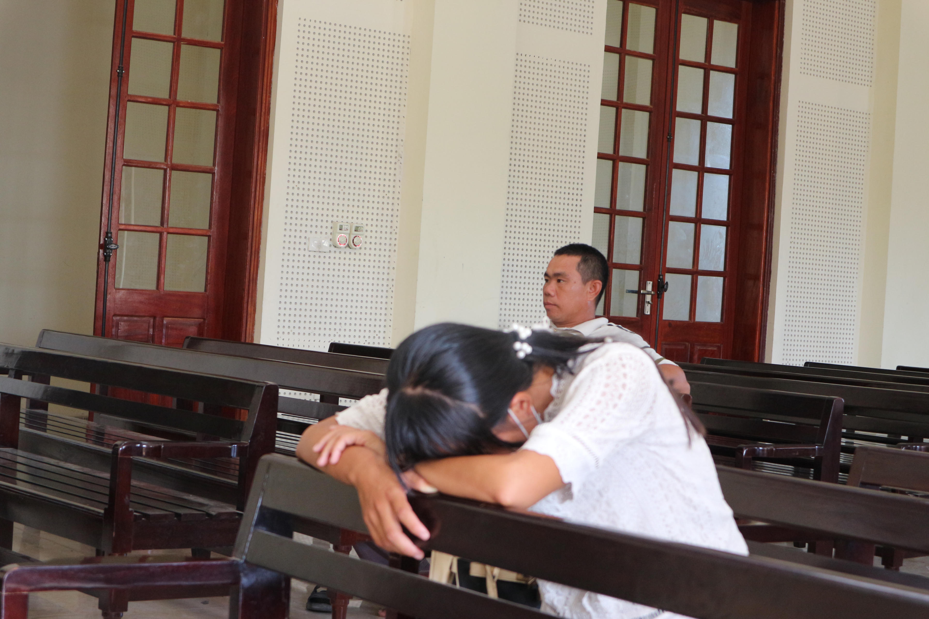 Ngồi phía dưới nghe chồng trình bày động cơ phạm tội, người vợ sinh năm 1994 đã nhiều lần sụt sùi, len lén lau nước mắt. Dáng người nhỏ thó, gầy gò, chị chỉ biết lặng lẽ nhìn chồng từ phía sau. Hai vợ chồng đến với nhau từ bàn tay trắng nên cả hai luôn động viên nhau làm việc, chăm lo cho gia đình. Ngày chồng lên đường xuất ngoại, lòng chị ngổn ngang nhiều nỗi lo lắng.